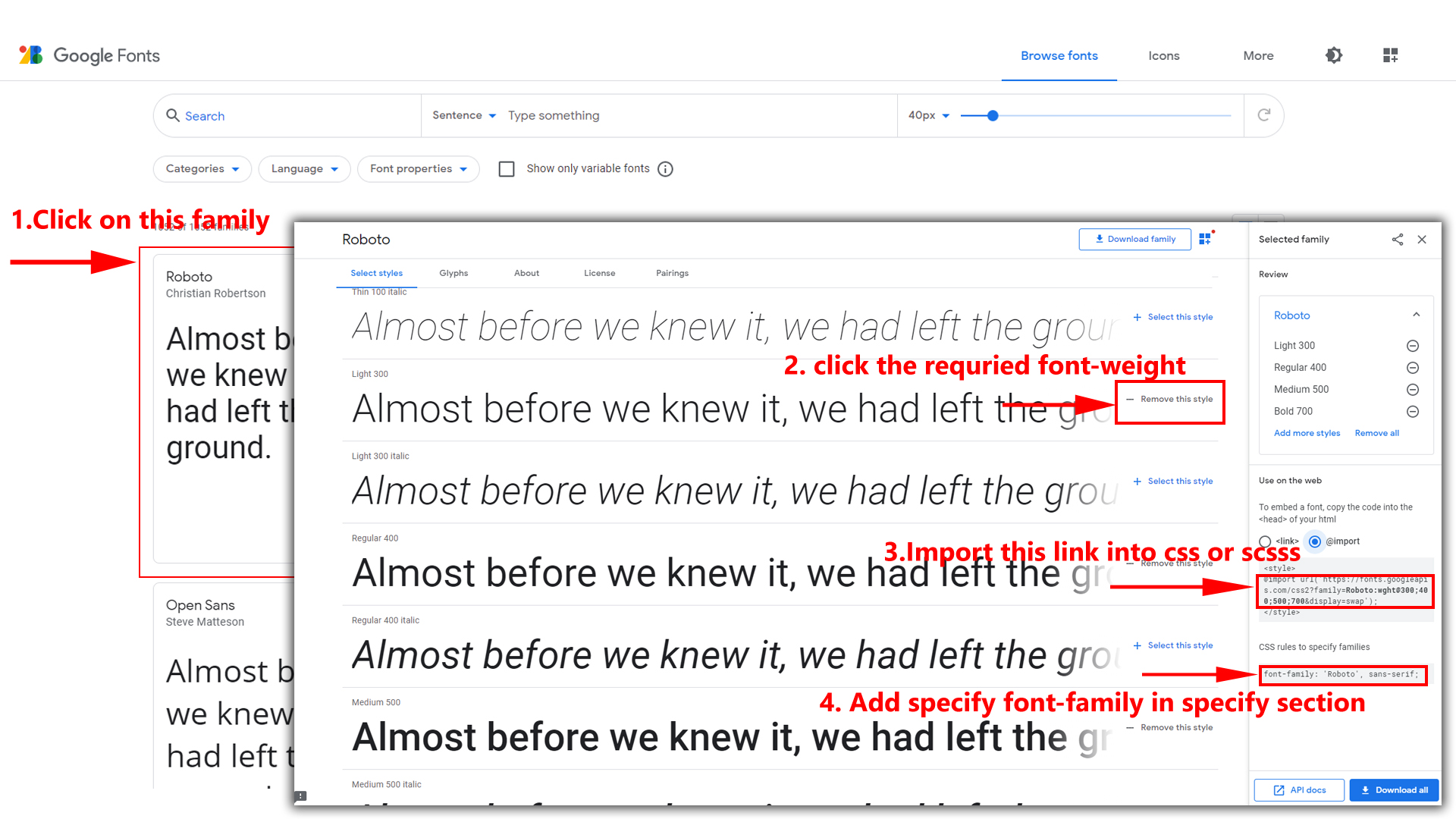 And add the Your Selected font-family in _variables.scss(src/assets/scss/_variables.scss)